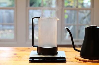 We recommend starting at a coffee to water ratio of 1:16, and adjusting subsequent brews to taste. Setting your French press on a kitchen scale when you brew should help you nail that ratio perfectly, but Since French presses come in a few common sizes, below is a handy breakdown of common weights and volumes. (It's worth noting that many French presses sell themselves as "4 cup" or "6 cup" presses, but this usually refers to a 4 oz per coffee cup "serving size" rather than the standard 8 oz measurement. To keep things straight, we recommend measuring by weight in grams, or finding the fluid ounce capacity of your press.)