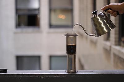 Option 2: If you don’t have an aeropress, begin by grinding your beans as finely as possible. Then brew your coffee with a high ratio of coffee to water. Our go-to is 12.5 grams of water to 1 gram of coffee (or 12.5 : 1).