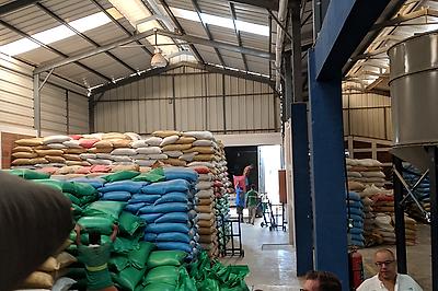 The mill is where the most intensive quality control takes place to ensure that only the best beans are exported. Each lot of coffee is loaded into a hopper and fed through the production line. First, the parchment is removed and the green beans are passed through a de-stoner, which filters out any rocks or debris that may have mixed in with the coffee during processing.